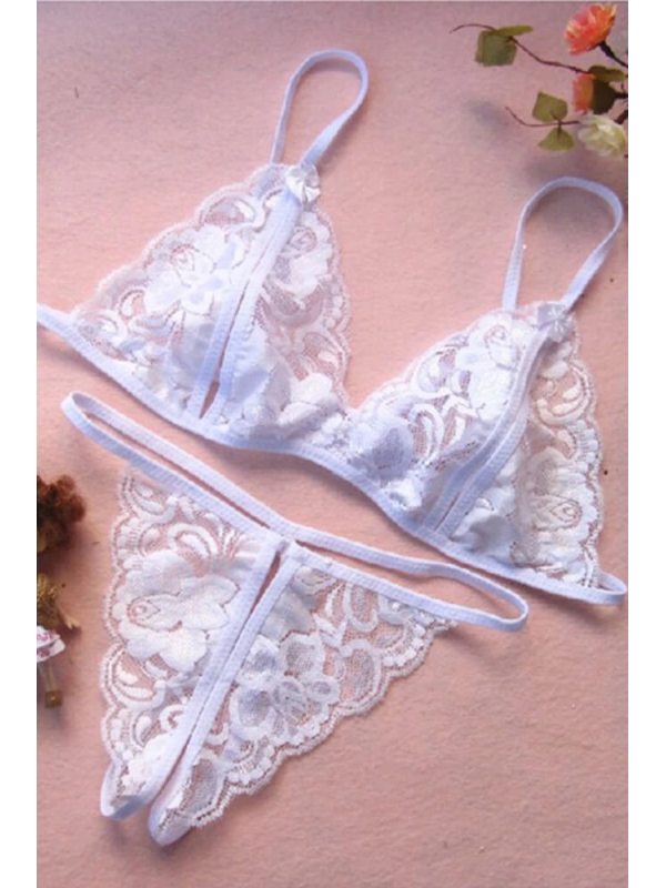- Beyaz Dantelli Fantazi Sütyen ve G-String Takımı