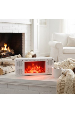 Alev Şömine Efektli Bluetooth Hoparlör Beyaz, modern tasarımı ve etkileyici alev görseli ile yaşam a..