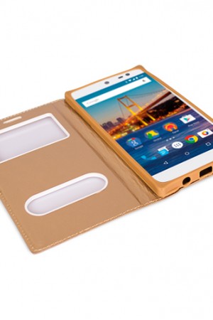 Vodafone Smart 6 Prime Gizli Mıknatıslı Pencereli Magnum Kılıf GoldUyumlu Cihaz: Vodafone Aksesuarla..
