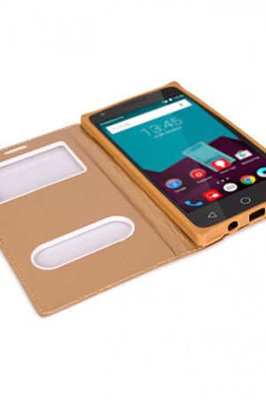 FitCase Dolce Vodafone Smart 7 Style Gizli Mıknatıslı Pencereli Kılıf GoldUyumlu Cihaz: Vodafone Aks..