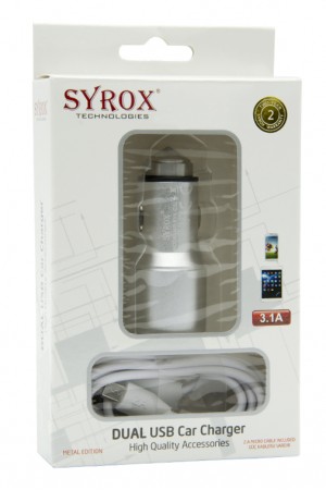 Syrox Araç İçi Şarj Aleti + Micro USB Kablo Set 3.1A Çift USB Metal Araç İçi Şarj Adaptörü ..