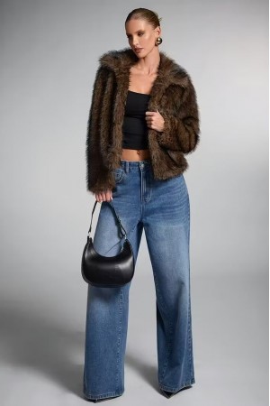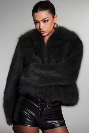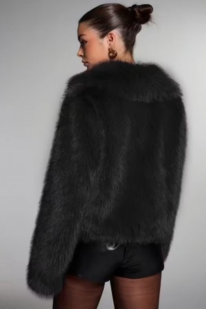 Kadınların Zarif Vintage Suni Kürk Mont - Lüks Kış Ceketi, Düğme Önü, Uzun Kollu ve Düz Renk Tasarım..