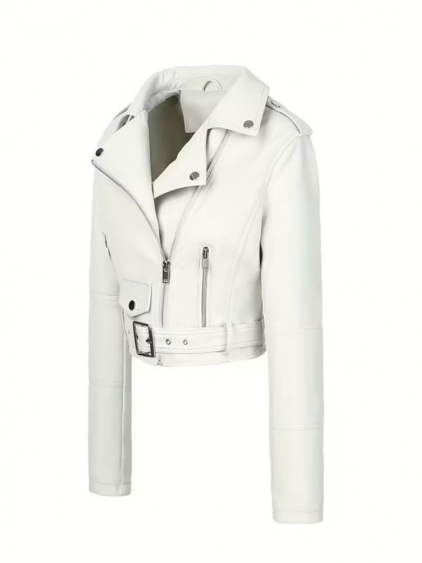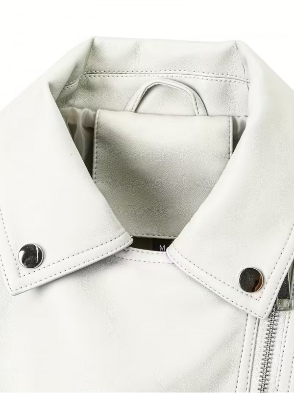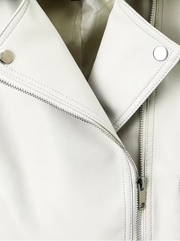 Fermuar Kapanışlı Beyaz Şık Motosiklet Ceketi 251014125918
