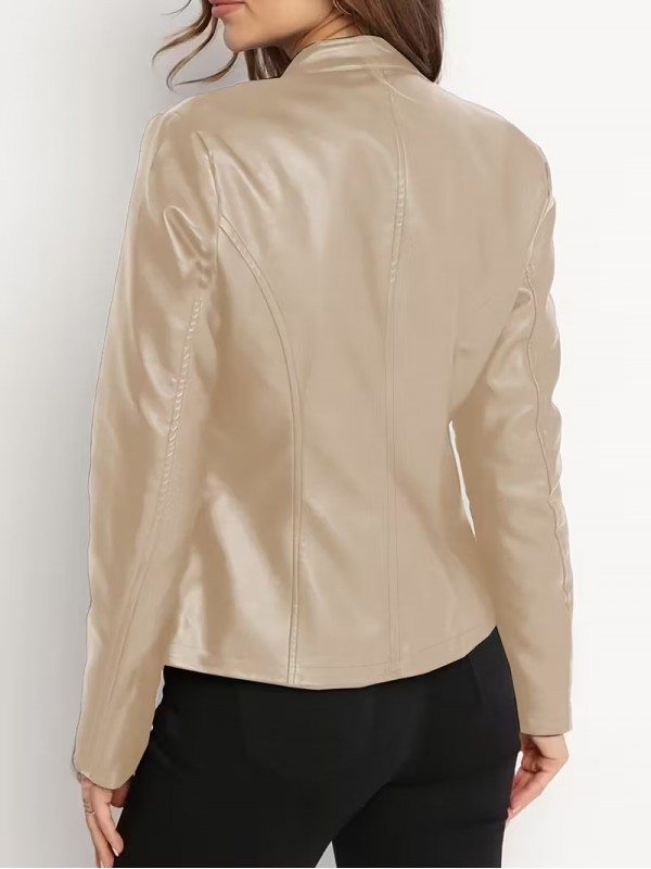Deri Ceket - Tam Fermuarlı Uzun Kollu Motosiklet Montu, Dik Yaka…