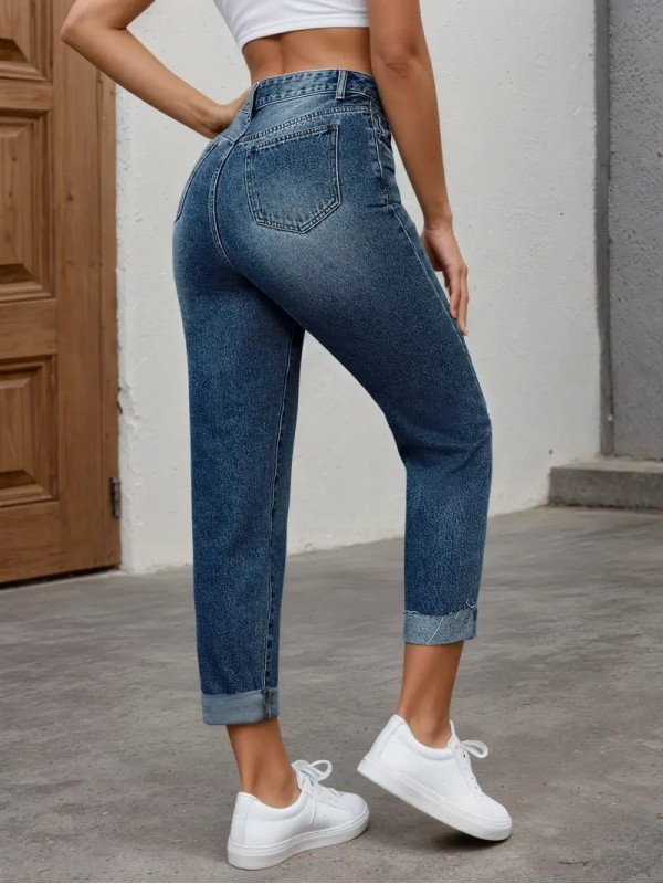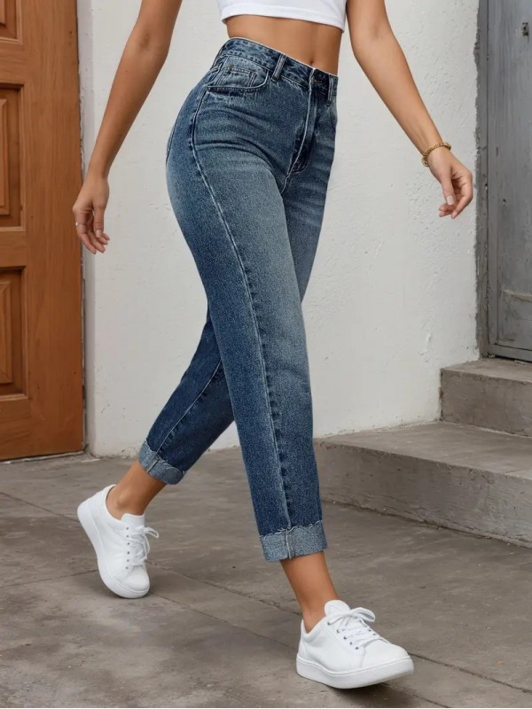 iç Göstermeyen, Orta Yükseklikte, Her Mevsim Giyilebilir ve Günlük/Resmi Kombinler İçin Esnek Pantolon - Kadınlar İçin Şık Jeanlar