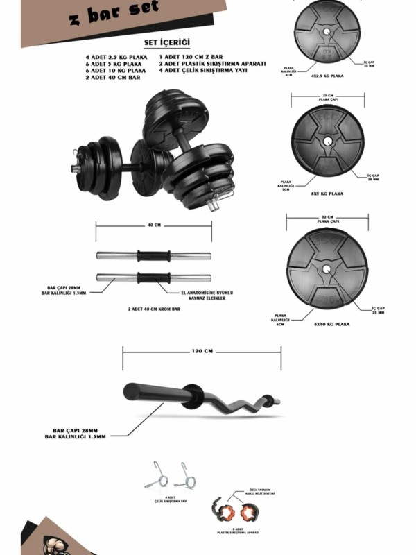 68 Kg Z-Barlı MEGASET Halter Seti Ve Dambıl Seti Ağırlık Fitness Seti Ürün içeriği : 1 Adet 150 cm u..