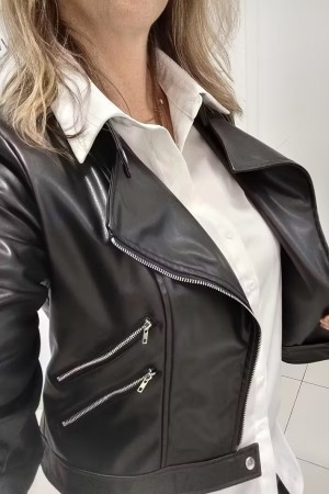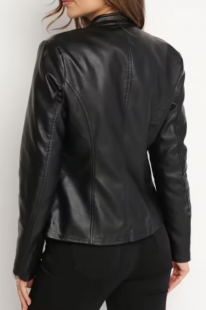 Fermuar Kapanışlı Siyah Şık Motosiklet Ceketi…