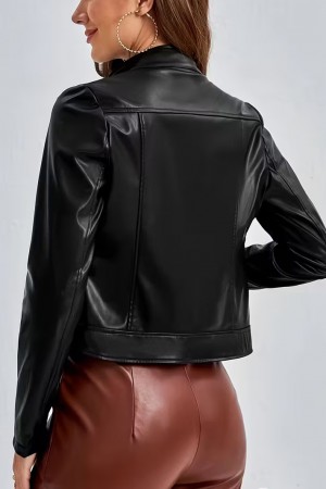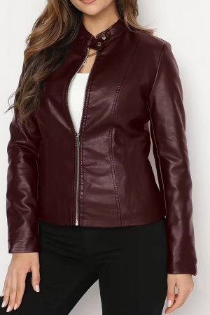 Deri Ceket - Tam Fermuarlı Uzun Kollu Motosiklet Montu, Dik Yaka…