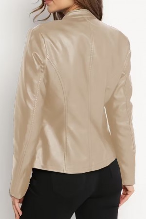 Deri Ceket - Haki Tam Fermuarlı Uzun Kollu Motosiklet Montu…
