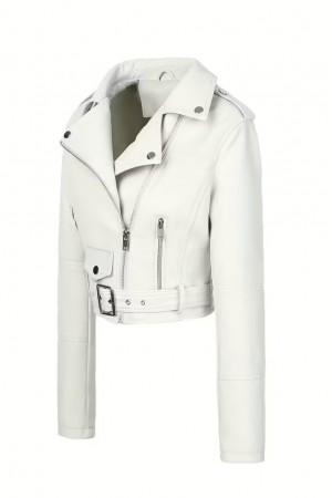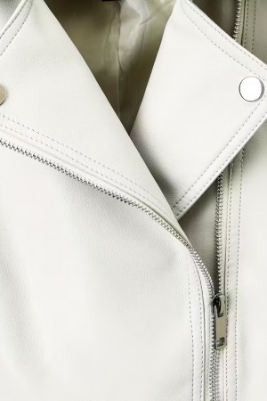 Fermuar Kapanışlı Beyaz Şık Motosiklet Ceketi…