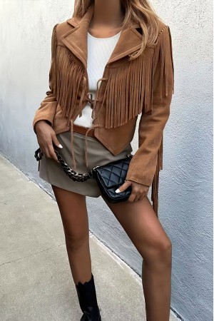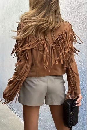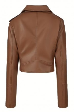 Fermuar Kapanışlı Kahverengi Şık Motosiklet Ceketi…