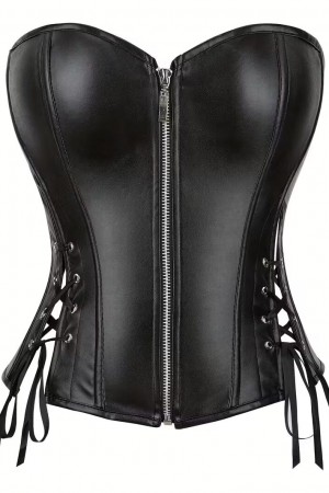 Gotik Punk Fermuarlı Korse - Ayarlanabilir Sırt Bağlama…