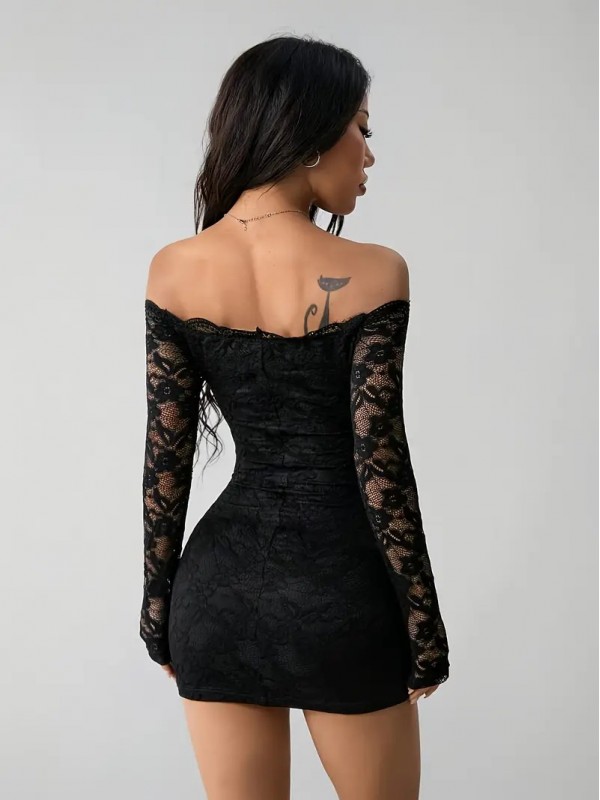Siyah Asimetrik Yaka, Uzun Kollu, Fermuar Detaylı 251025114636