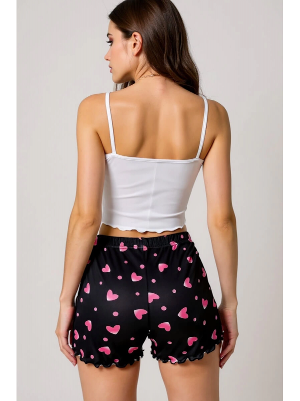 Kalp Desenli Askılı Şortlu Pijama Takımı lilaTM1364