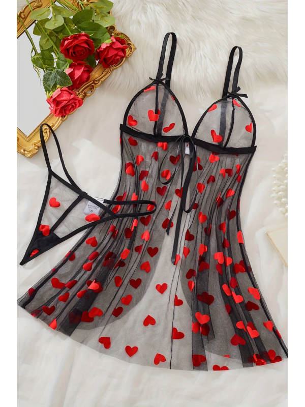 Kalp Desenli Siyah Transparan Gecelik TM1378 lilaTM1378