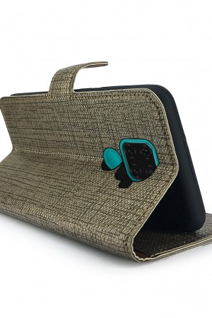 Huawei Mate 30 Lite Kılıf FitCase Fabric Kapaklı Cüzdanlı…