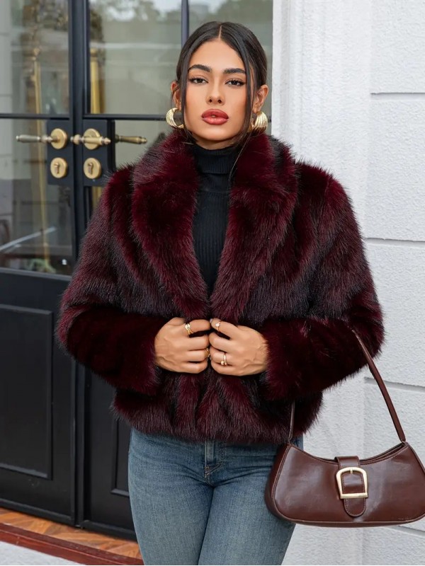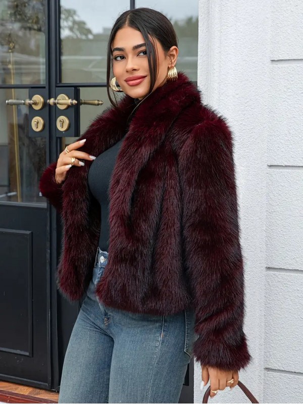 Koyu Kırmızı Suni Kürk Ceket 251023112452