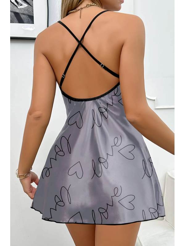Love Baskılı Gri Saten Gecelik lilaTM1330