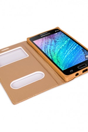 FitCase Dolce Galaxy J1 (J100) Gizli Mıknatıslı Pencereli Kılıf GoldUyumlu Cihaz: Galaxy J1 (J100)Ma..