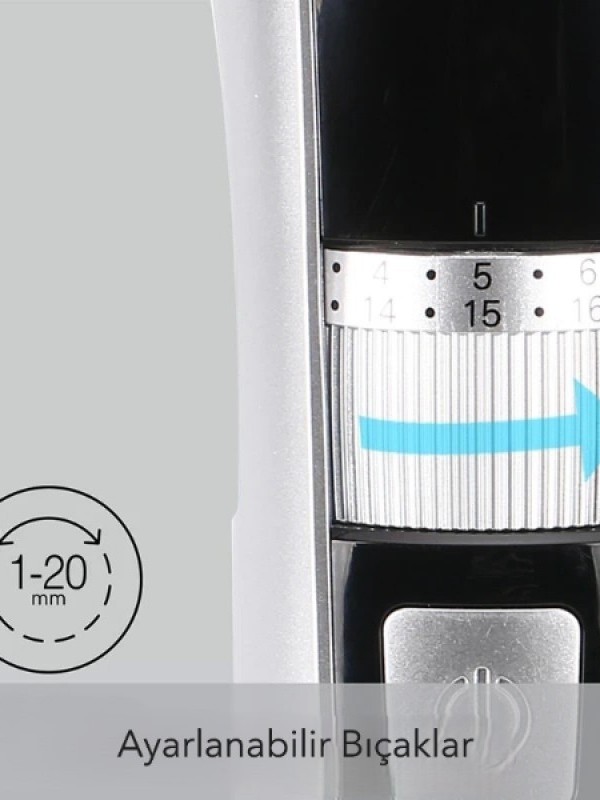 2 farklı tarakla (1–10 mm / 11–20 mm aralığında, 38 seviye ayarlanabilir uzunluk) her saç ve sakal stiline uygun hassas kesim yapılabilir.