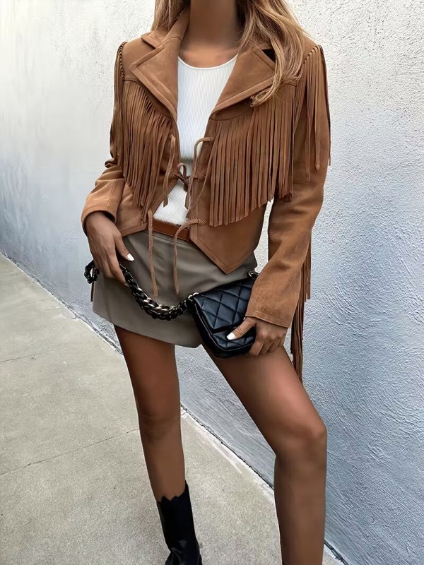 Şık Yaka Detaylı Püskül Ceket 251014174932
