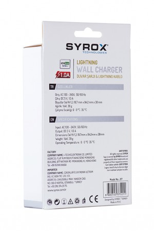 Syrox J17 iPhone Lightning Kablolu Şarj Aleti Set 1.0A Beyaz…