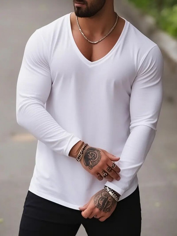 V-Yaka Uzun Kollu Tişört 251016112323