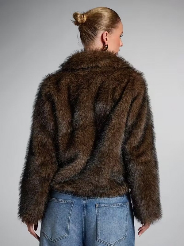 Kadınların Zarif Vintage Suni Kürk Mont - Lüks Kış Ceketi, Düğme Önü, Uzun Kollu ve Düz Renk Tasarım..